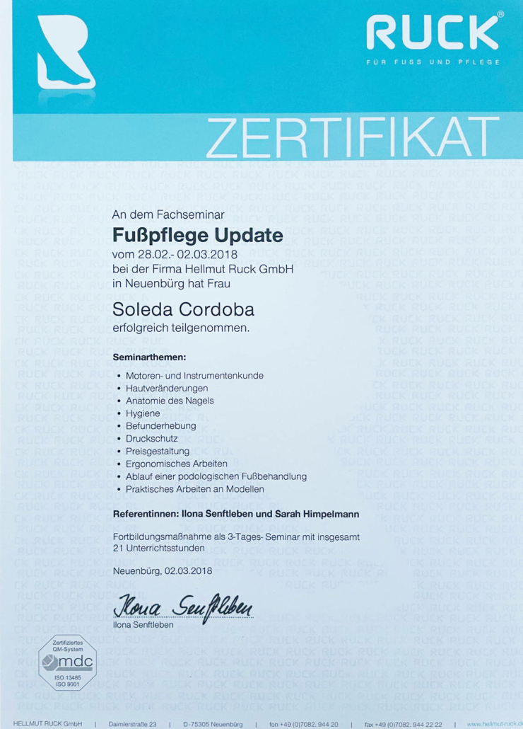 Ich bin ausgebildete und professionelle Fachfußpflegerin, meine Mission ist die Gesundheit und die Pflege Ihrer Füße und Hände !